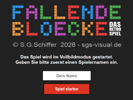 Ein Retro-Spiel, das im Vollbildmodus auf jedem Endgerät gespielt werden kann. HTML5, Javascript und PHP ermöglichen das Spiel auf klassische Weise zu spielen, mit Punktevergabe, die einem Spielernamen in einer Highscore-Liste zugeordnet werden kann (Die 10 Besten Spieler). Die ersten Beta-Tester waren begeistert...