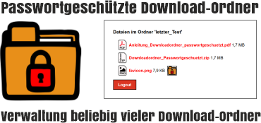 Mit diesem Programm erstellen und verwalten Sie im Handumdrehen beliebig viele Download-Ordner, ordnen jedem Ordner beliebig viele Benutzer zu und können Benutzer jederzeit wieder ausschließen oder neue Passwörter zuordnen. Alle Dateien werde mit Icon angezeigt, Bilder verfügen über eine Vorschau. Ideal, wenn Sie Dateien nur ausgewählten Personen zugänglich machen möchten, egal ob nur ein oder mehrere Benutzer. Jeder Benutzer hat seinen Zugangsnamen und sein eigenes Passwort.